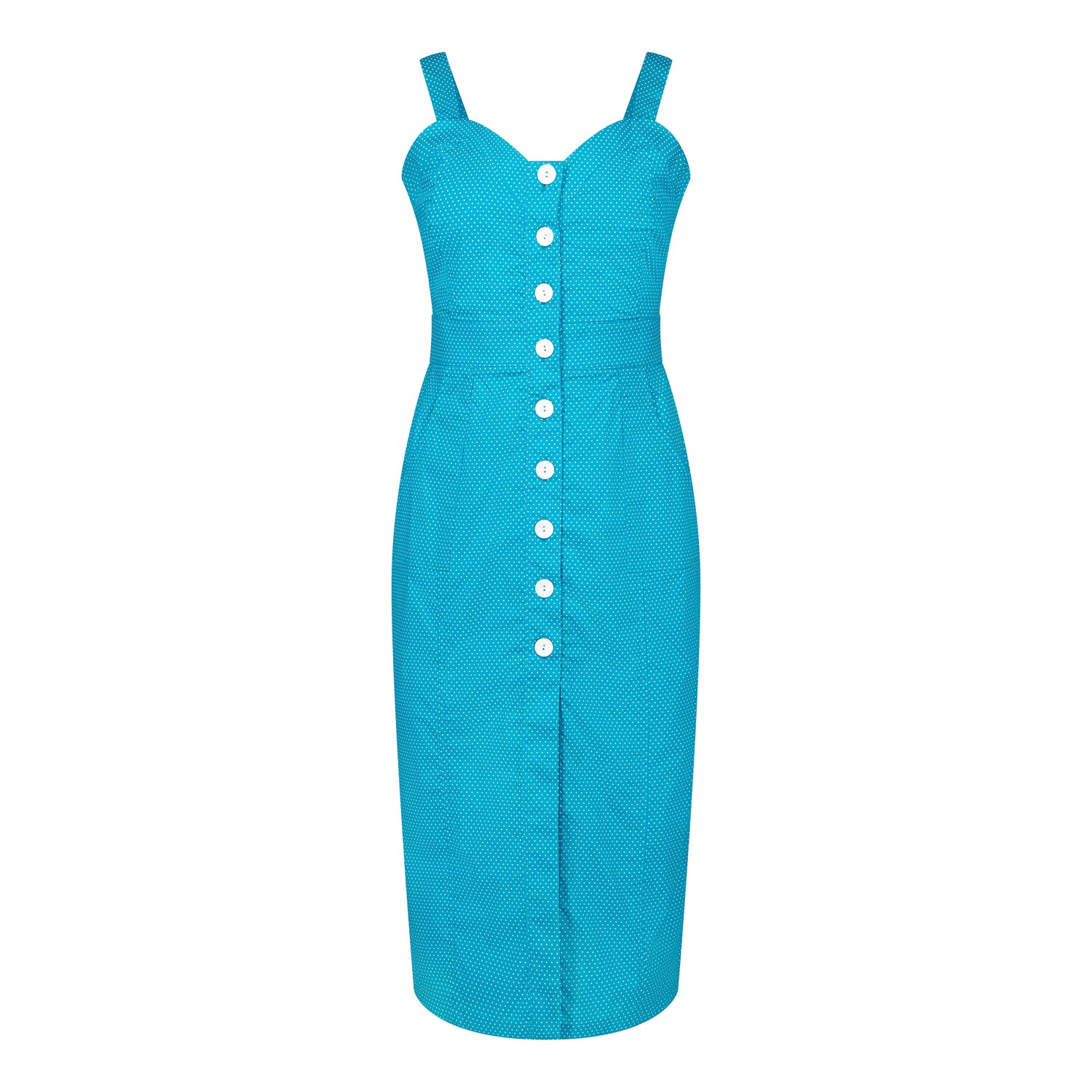 Queenie Quintessential Sweetheart High Waisted Dress in Teal Pin Spot