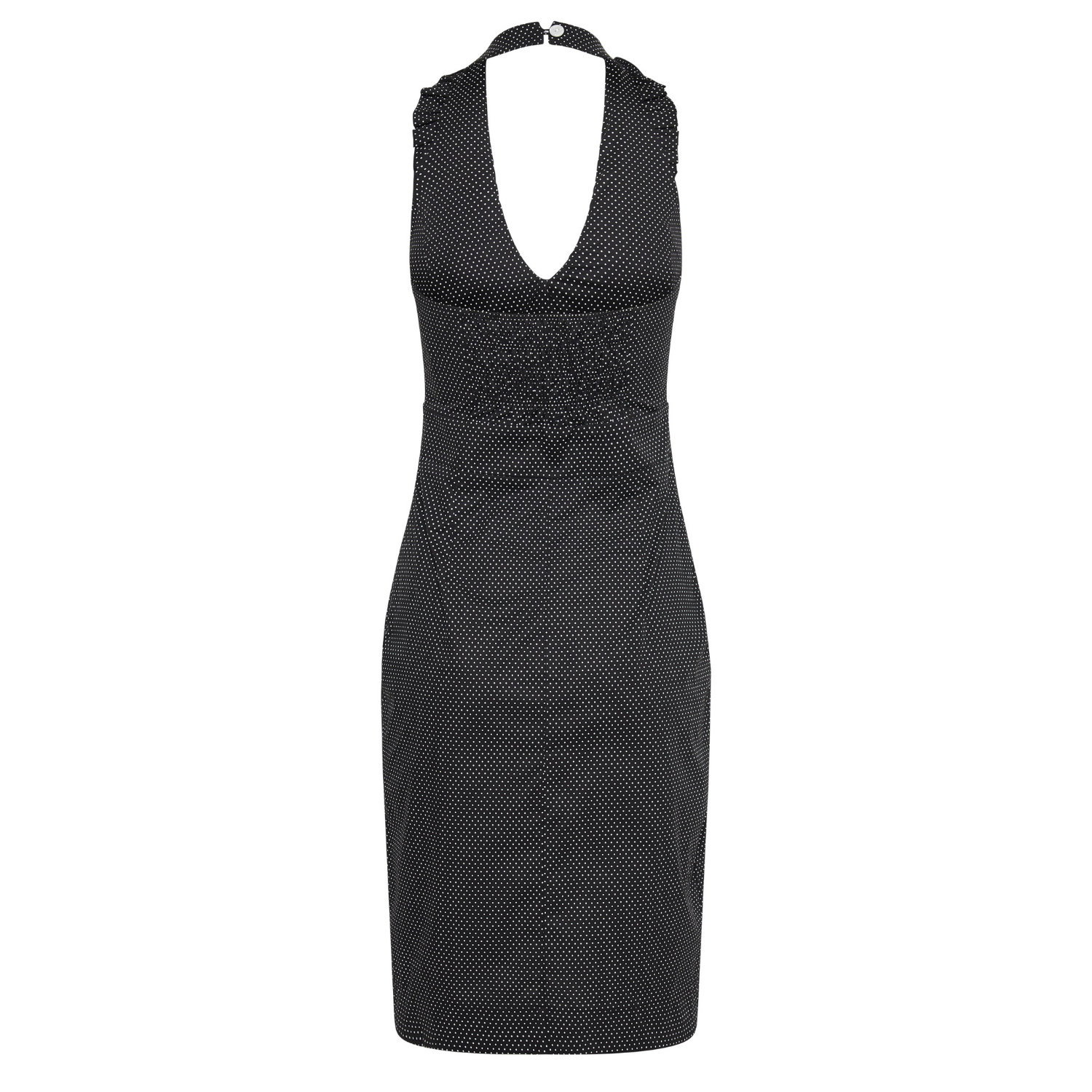 Betsy Beauty Frill Neck Halter Dress in Black Pin Spot