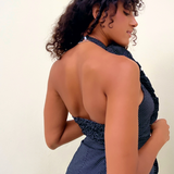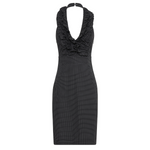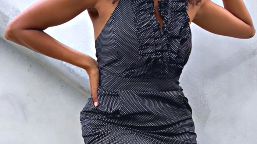 Introducing Betsy Beauty: the ultimate halter dress that's destined to become your new favourite little black dress! This stylish number features a deep plunge ruffled neckline that adds just the right amount of sass to your look.