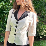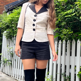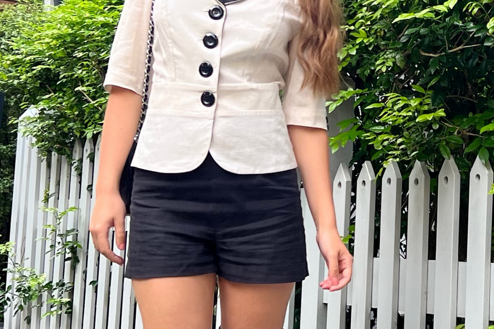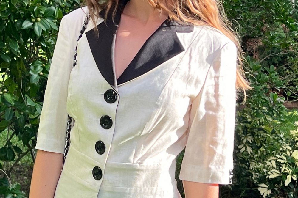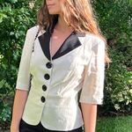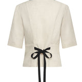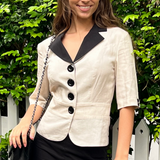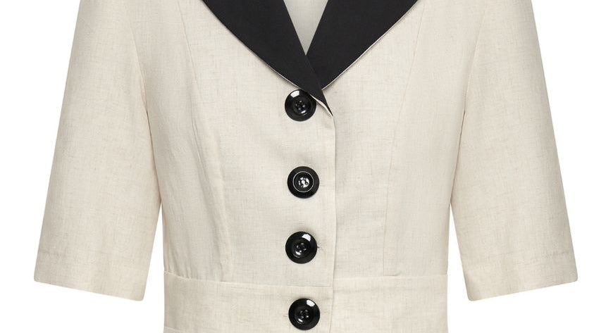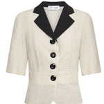 The Iris Igniting Jacket is an elegant wardrobe essential, offering the perfect blend of comfort and sophistication. Made from a premium mix of 30% linen and 70% Tencel, this jacket provides a soft, breathable feel with a polished look. Available in two beautiful colours—Dusty Pink and Natural—it is a refined and versatile addition to any wardrobe. Proudly designed and manufactured in Australia, it features a classic V-neckline that suits all bust sizes and 3/4 sleeves for added coverage. The jacket fastens easily with statement black front buttons and is finished with a contrast collar, adding a unique and stylish touch. Perfectly pairing with black pants or shorts, the Iris Igniting Jacket offers an effortlessly chic look for any occasion.