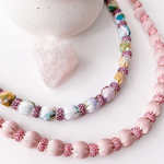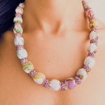 Crystal Embellished Beaded Necklace on Floral Purple Print