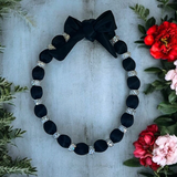 Crystal Embellished Beaded Necklace on Luxe Black Satin with White Crystals