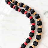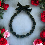 Crystal Embellished Beaded Necklace on Luxe Black Satin with Black Crystal