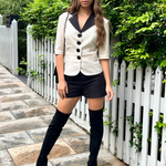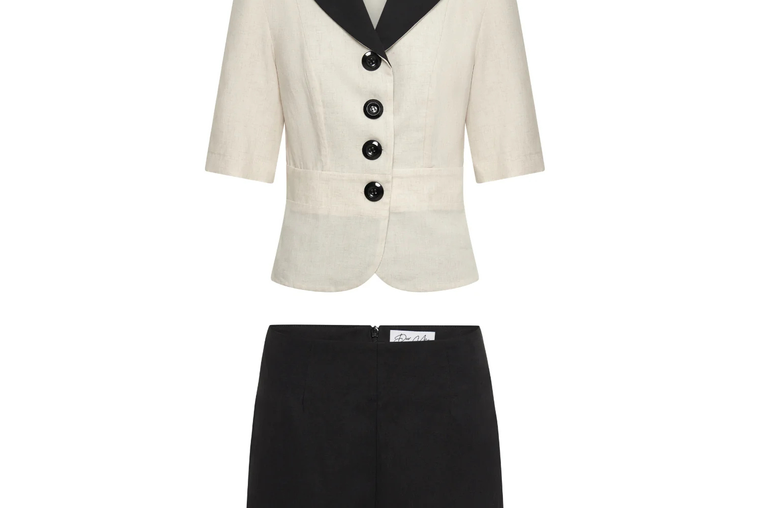 STEP OUT with confidence in the Iris Igniting 3 piece Set consisting of Jacket, Shorts and Skirt • Your new transeasonal three-piece set