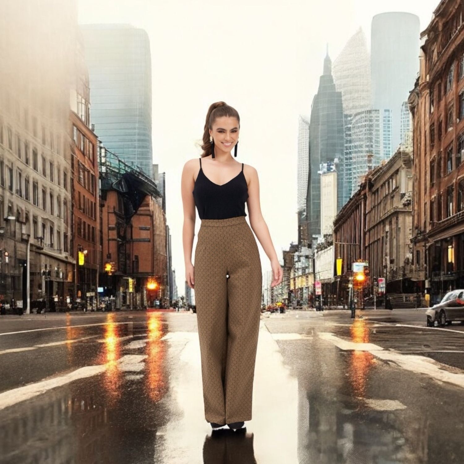 Introducing our Ivy Impressing High Waisted Wide Leg Trousers, meticulously crafted from luxurious mosaic jacquard fabric, making them a timeless staple in any wardrobe. These trousers feature an invisible back zipper and boast a flattering fit and flare silhouette for a modern yet classic look.