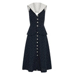 Introducing the captivating Loretta Laughing Anchor Print Midi Dress, where nautical charm meets feminine elegance. This stunning dress features a flattering peplum frill and meticulously hand-sewn statement anchor buttons, adding a touch of maritime flair to your wardrobe. The halter neckline offers a modern twist on the classic sailor collar, beautifully finished with navy piping for a polished look.