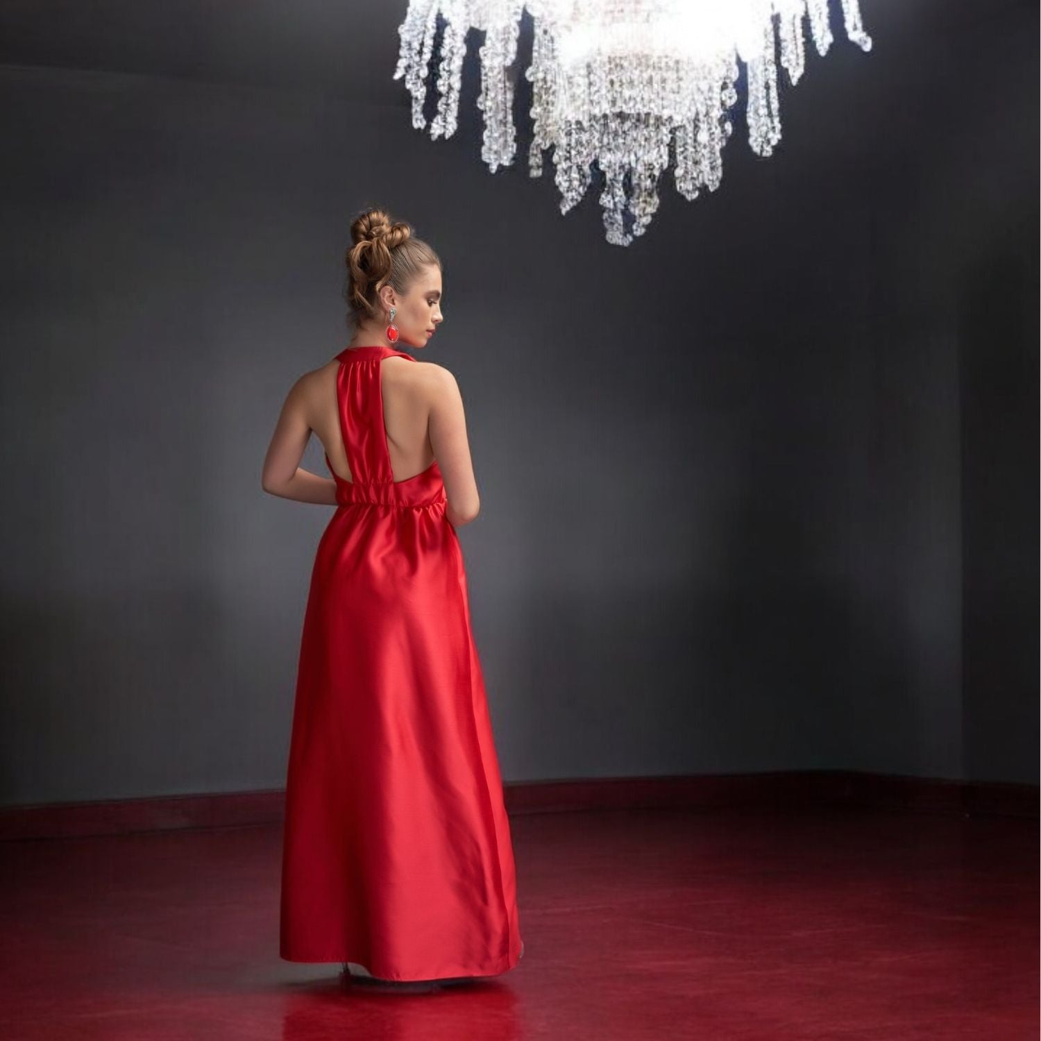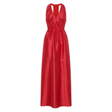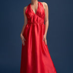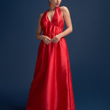 Odette Halter Full length Silk Gown in Red