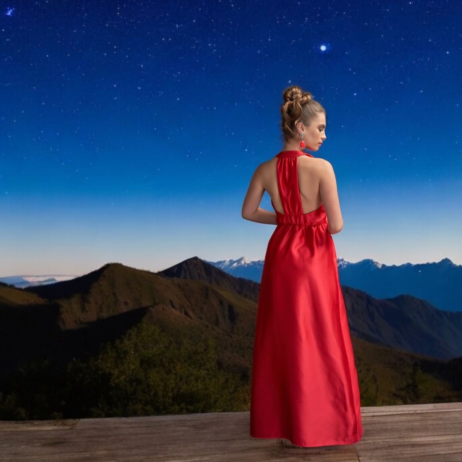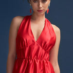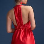 Introducing Odette Observing, a breathtaking halter dress that demands attention with its deep plunge neckline and striking centre back panel. Elevate your style with a captivating red hue that exudes confidence, and let the gathered floor-grazing skirt make every step a statement in sophistication. With mood-boosting shades of red dominating the runways and red carpets, now's the time to embrace this bold hue and secure your traffic-stopping look. Step out with confidence this season and make a fiery comeback that's impossible to ignore.