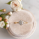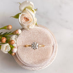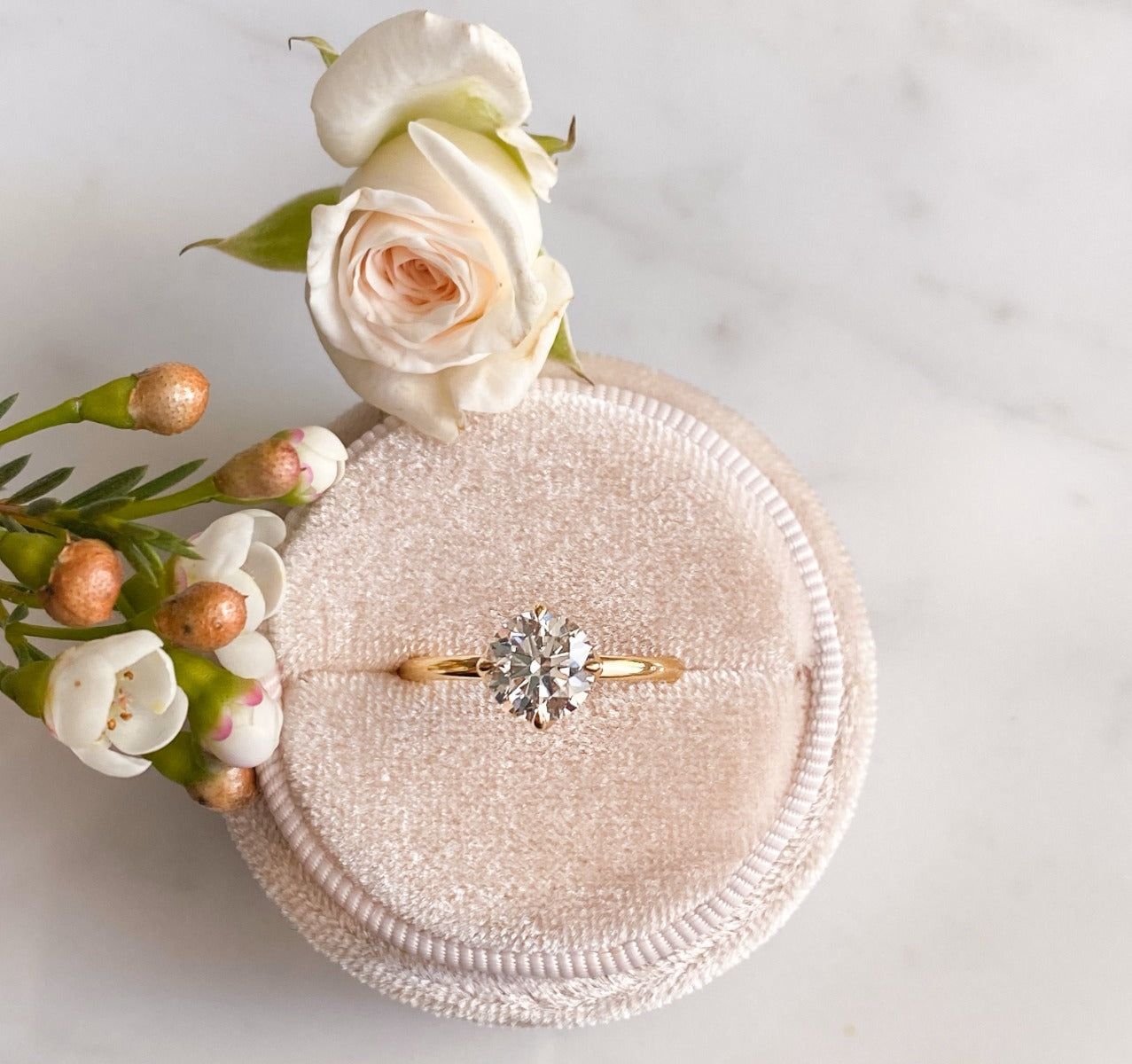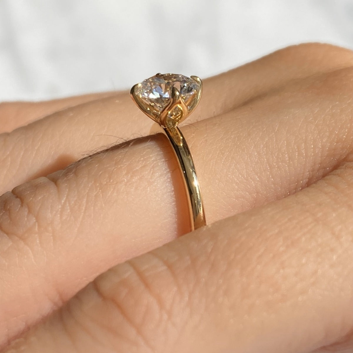 The Petal ring features a beautiful 4 petal basket to showcase the beauty of the centre 1.24ct Round Brilliant Cultured Diamond stone and a delicate gold band. This is a romantic take on a classic design.