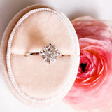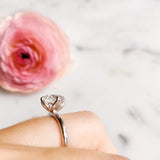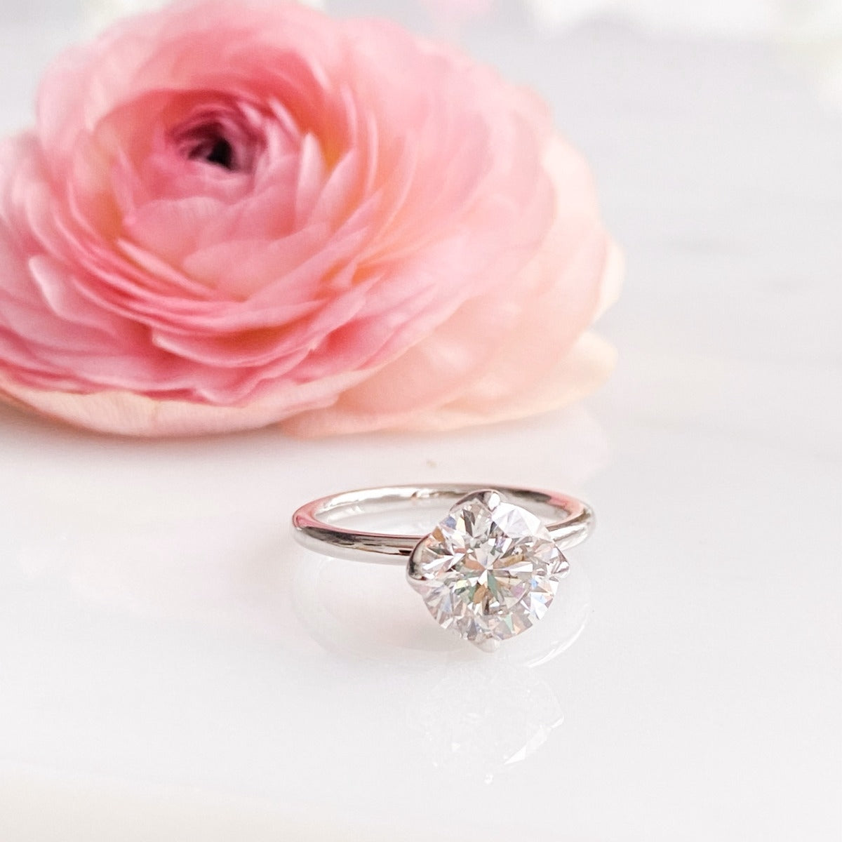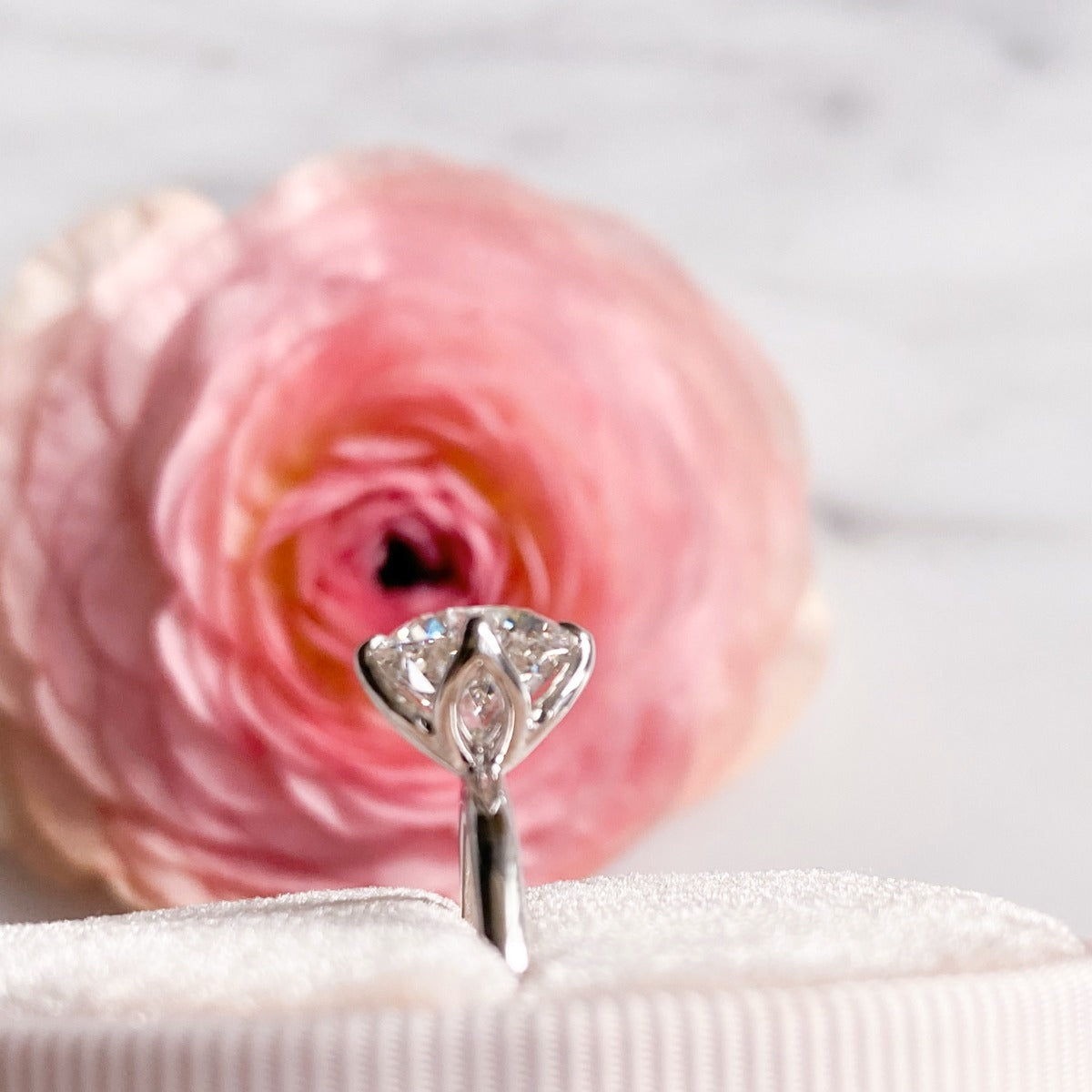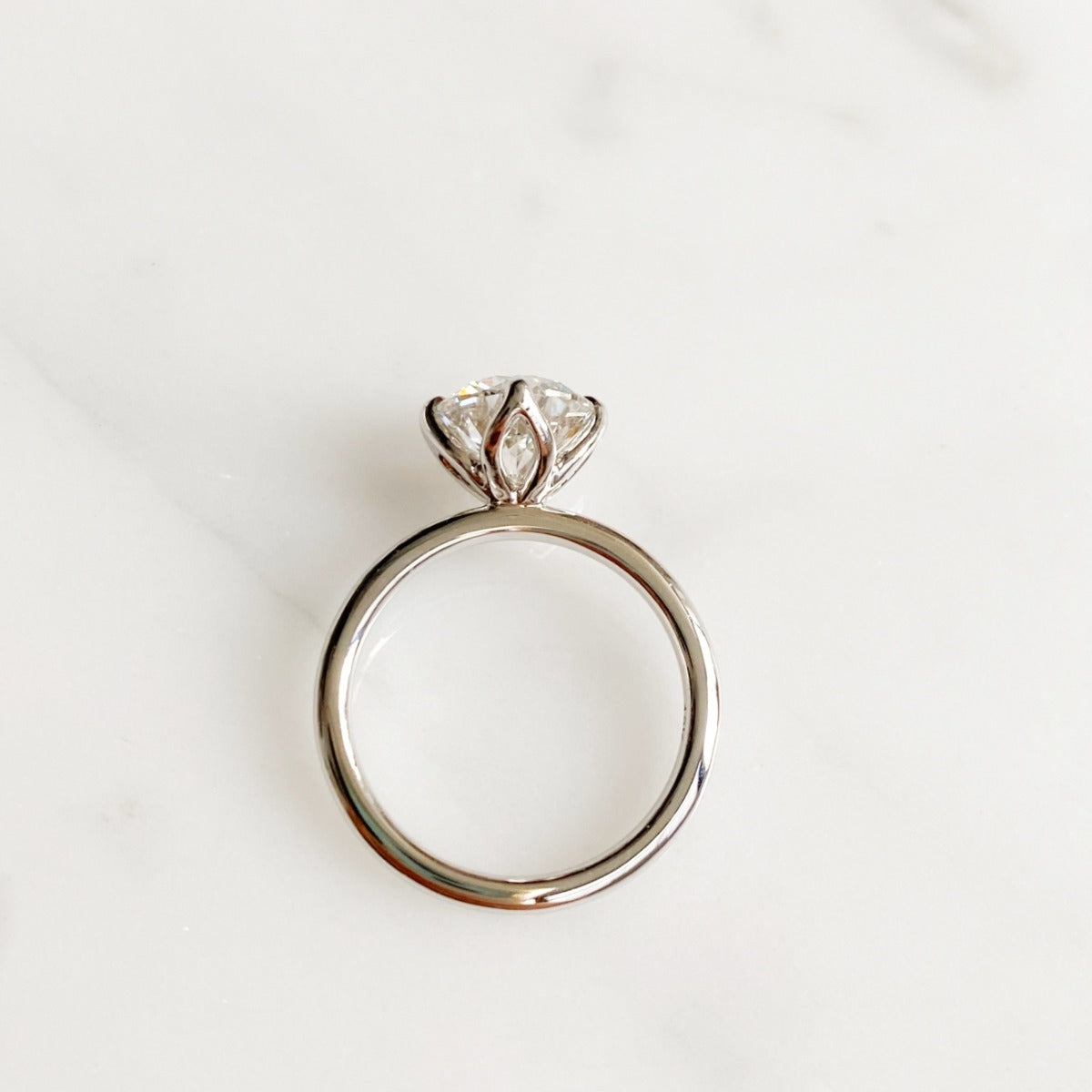 The Petal ring features a beautiful 4 petal basket to showcase the beauty of the centre 2.34ct Round Brilliant Cultured Diamond stone and a delicate gold band. This is a romantic take on a classic design.