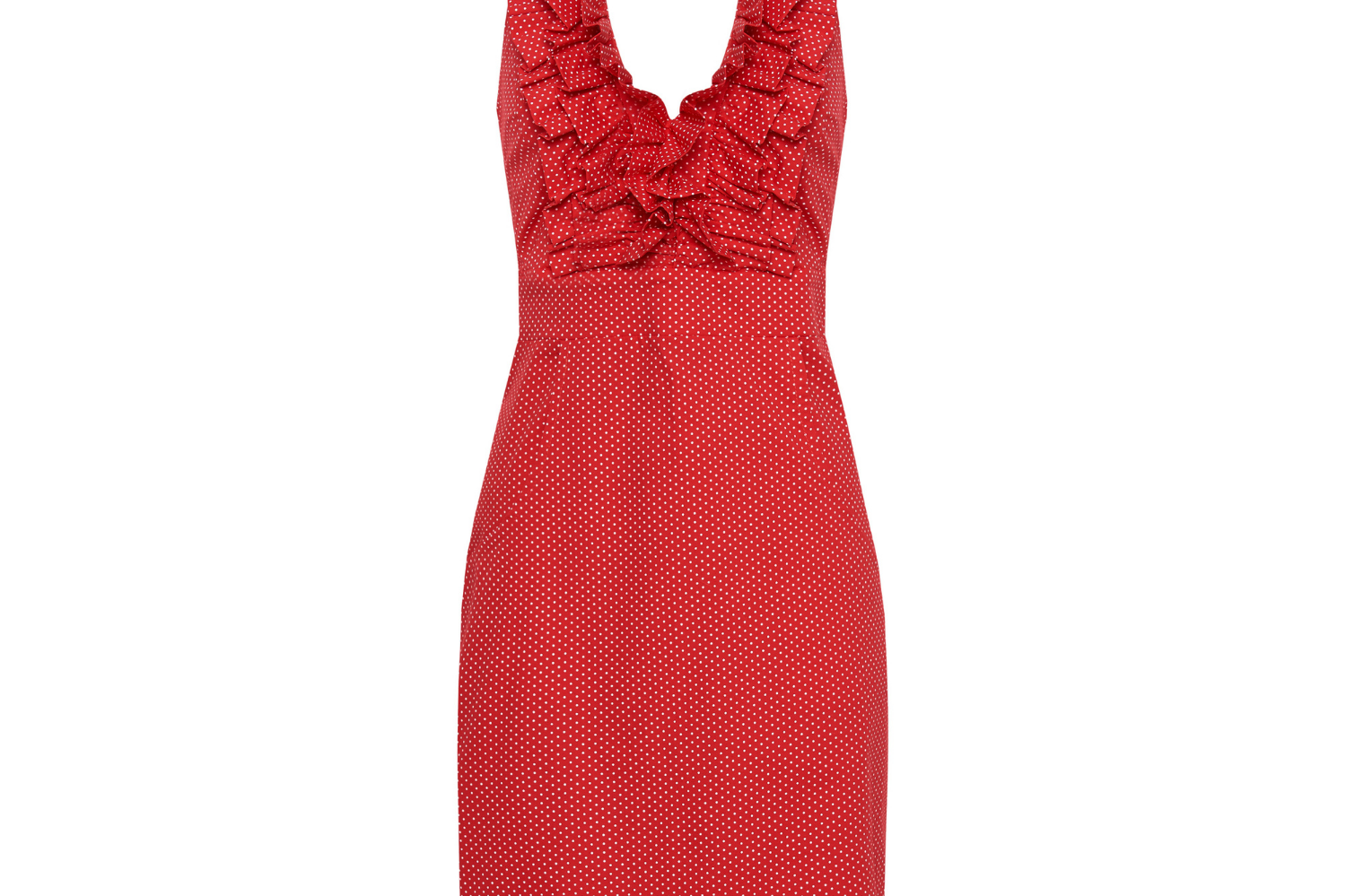Queenie Quintessential Sweetheart High Waisted Dress in Red Pin Spot