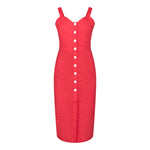 The sweetheart neckline and under-bust line are tailored to flatter womanly curves in all the right places, ensuring a flattering silhouette. With an easy front button opening and statement feature buttons, this dress offers both style and convenience. Plus, functional statement pockets add extra detail and functionality.